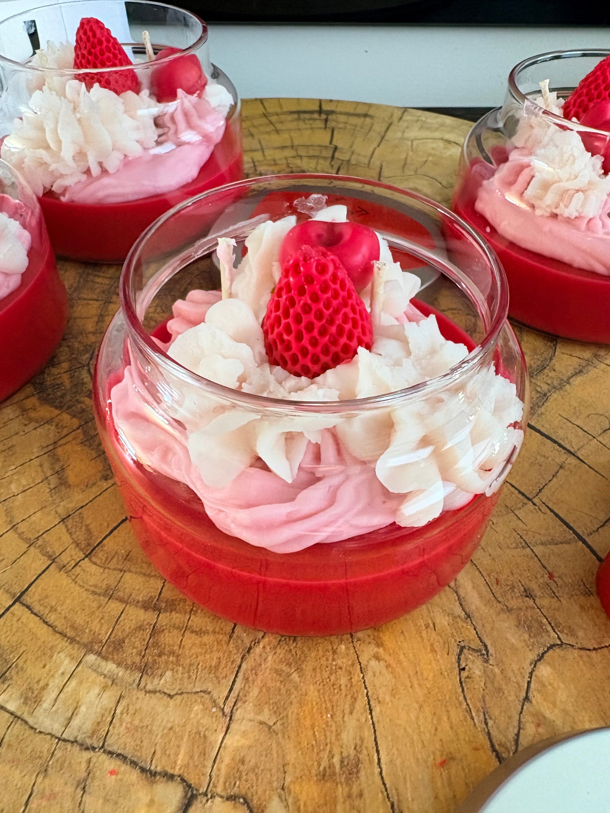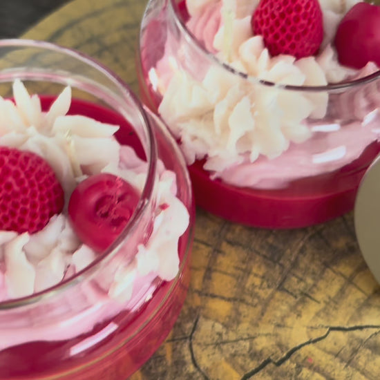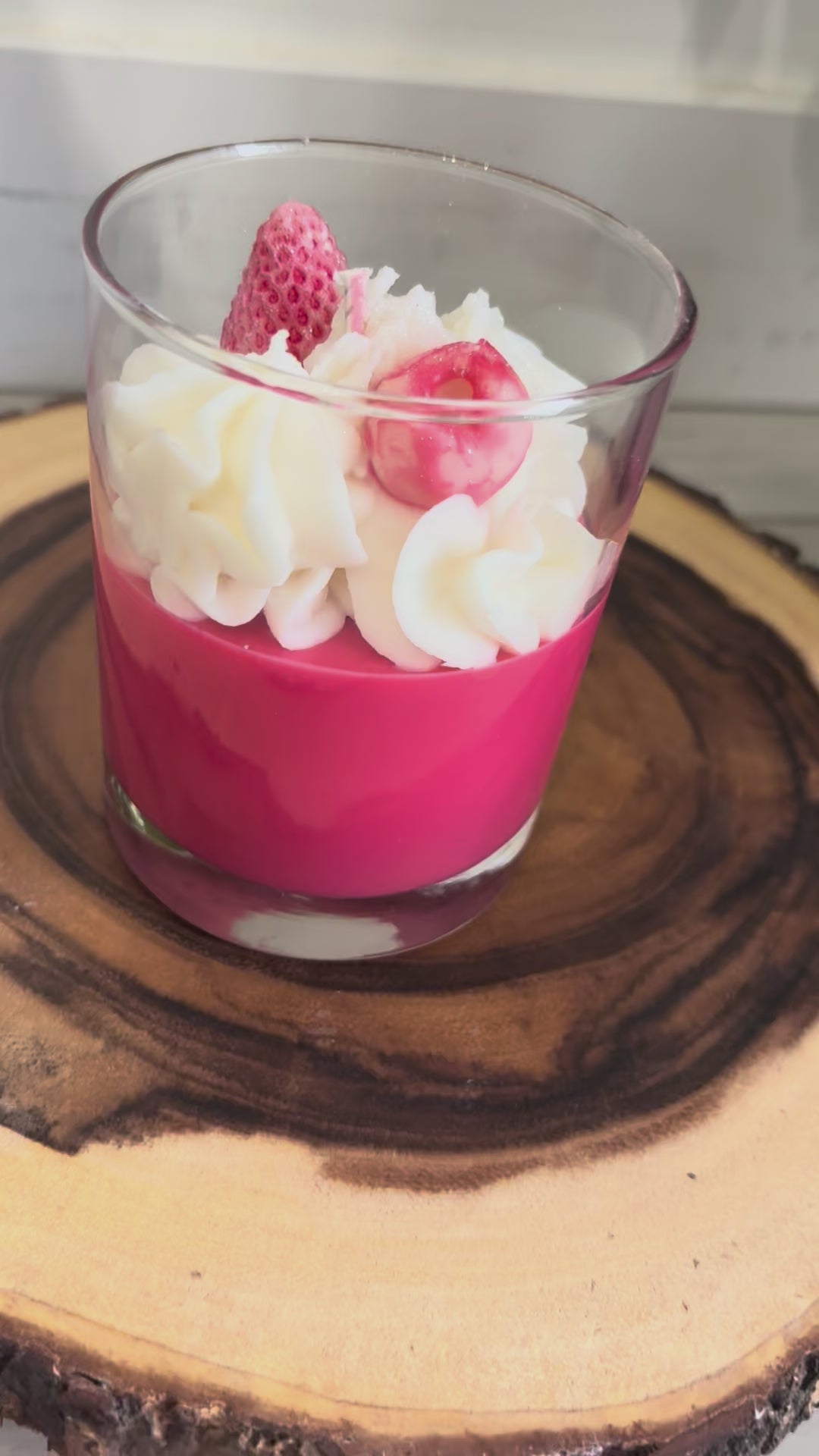 Our Feral Berry Dessert Candle is hand-crafted to look just like your favorite bakery treat — featuring a vibrant strawberry base, fluffy whipped wax topping, and adorable strawberry embeds.