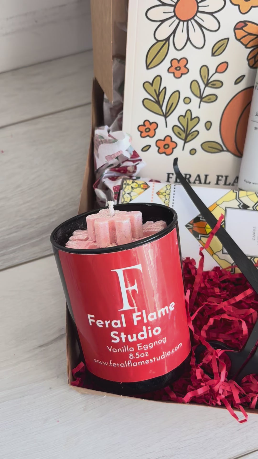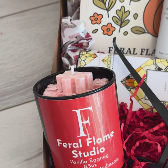 This cozy gift set is curated for mindful moments and creative relaxation. Each bundle includes two hand-poured Feral Flame Studio soy candle, a Color Me Seasonal mindful coloring book, and a set of premium matches and wick trimmer pick set — everything needed to spark joy and serenity at home.